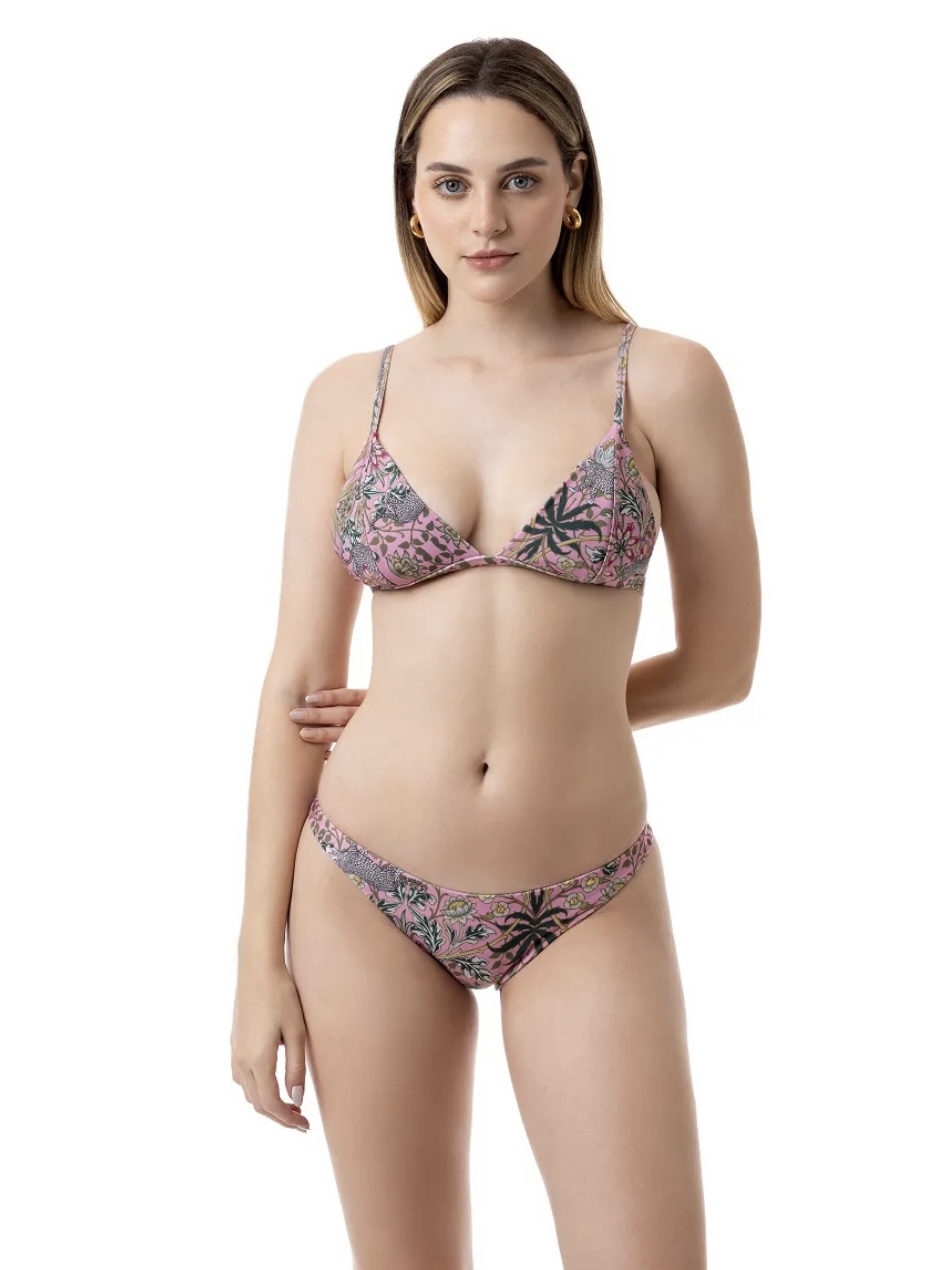 TOP TRIÂNGULO DE ALÇAS RETAS COM REGULAGEM E TANGA RETA COM EMPINA BUMBUM. COMPOSTO DE 92% POLIAMIDA E 8% ELASTANO, FORRO DE 80% POLIAMIDA E 20% ELASTANO.