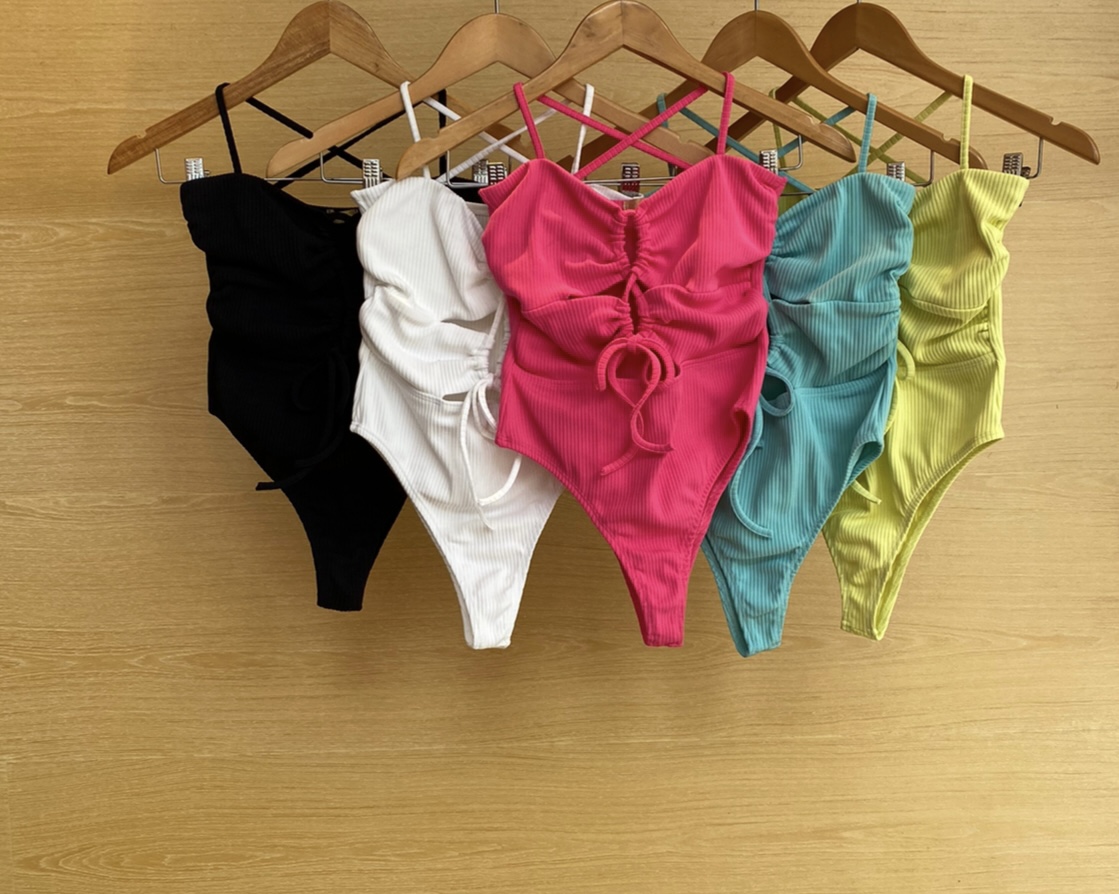 BODY CANELADO 95% POLIAMIDA E 5% ELASTANO.