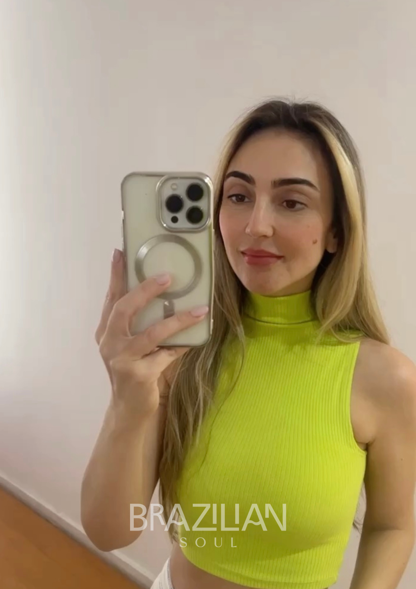 CROPPED CANELADO GOLA. 95% POLIAMIDA E 5% ELASTANO.