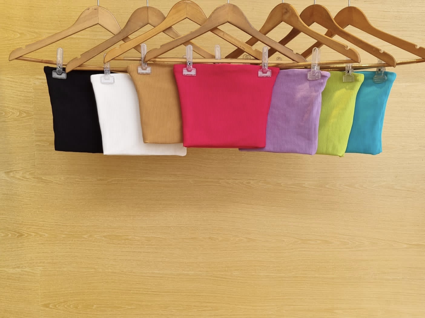 TOP FAIXA CANELADO. 95% POLIAMIDA E 5% ELASTANO.